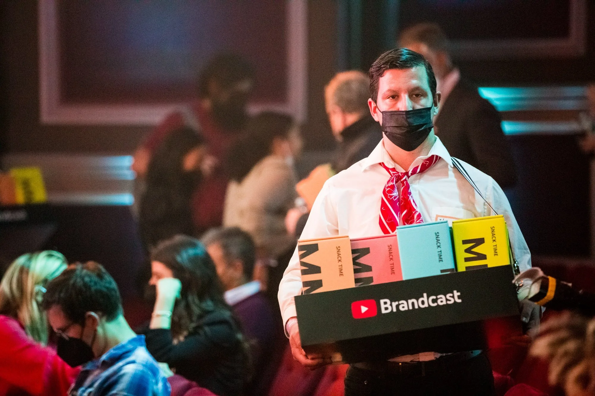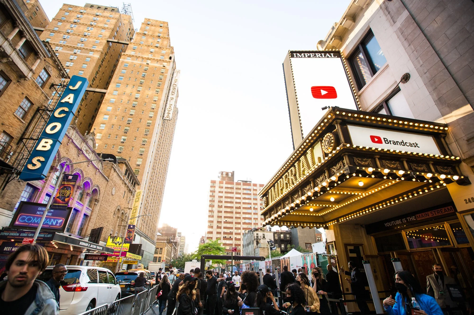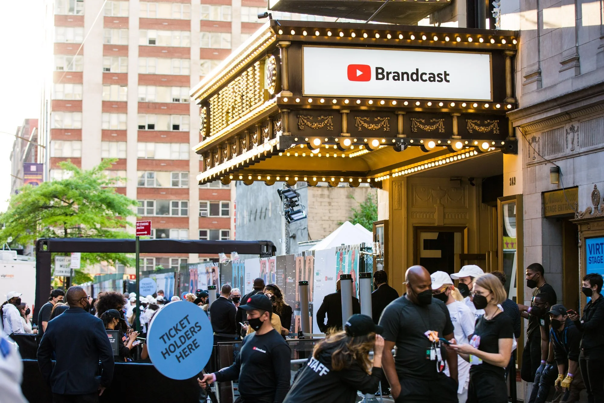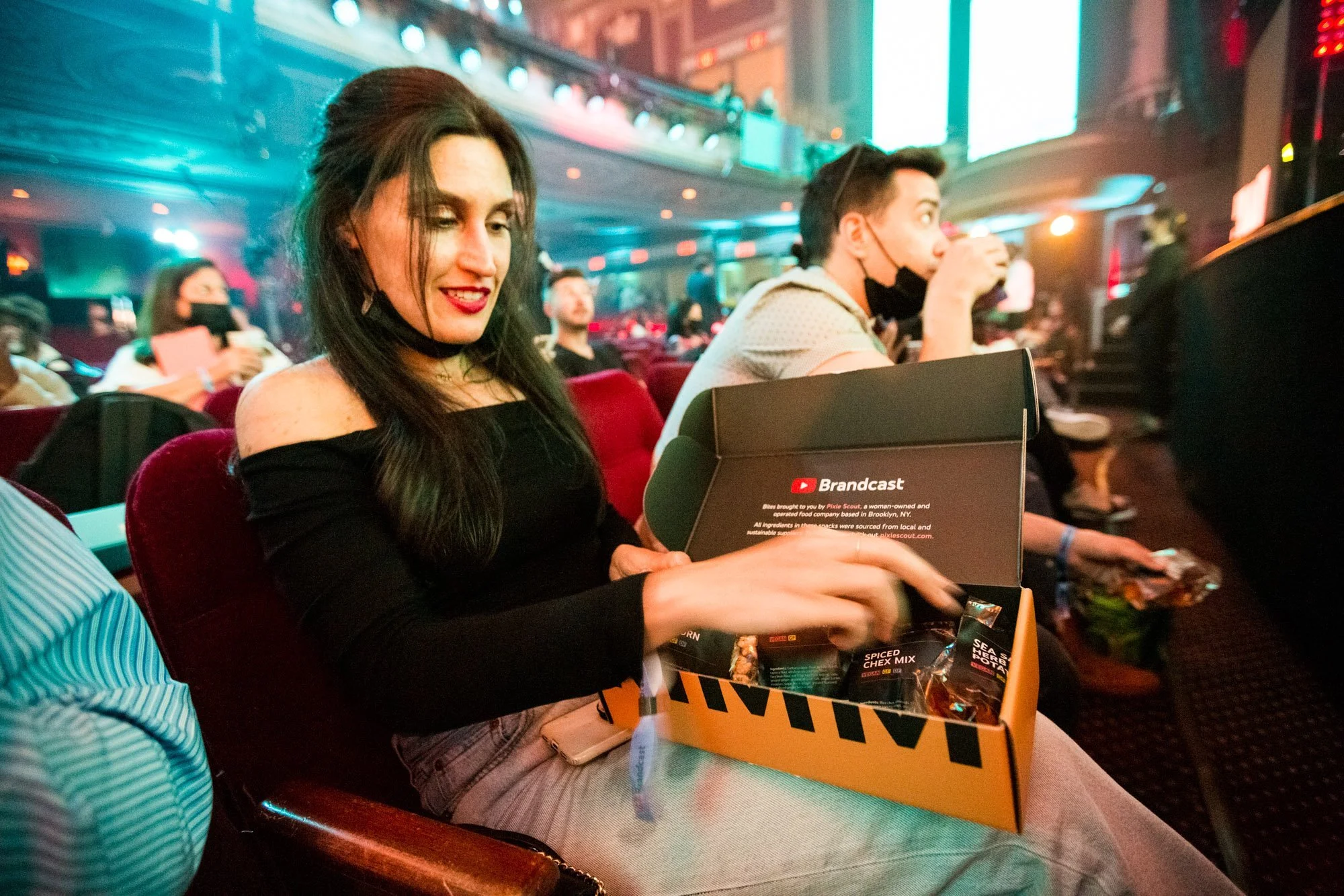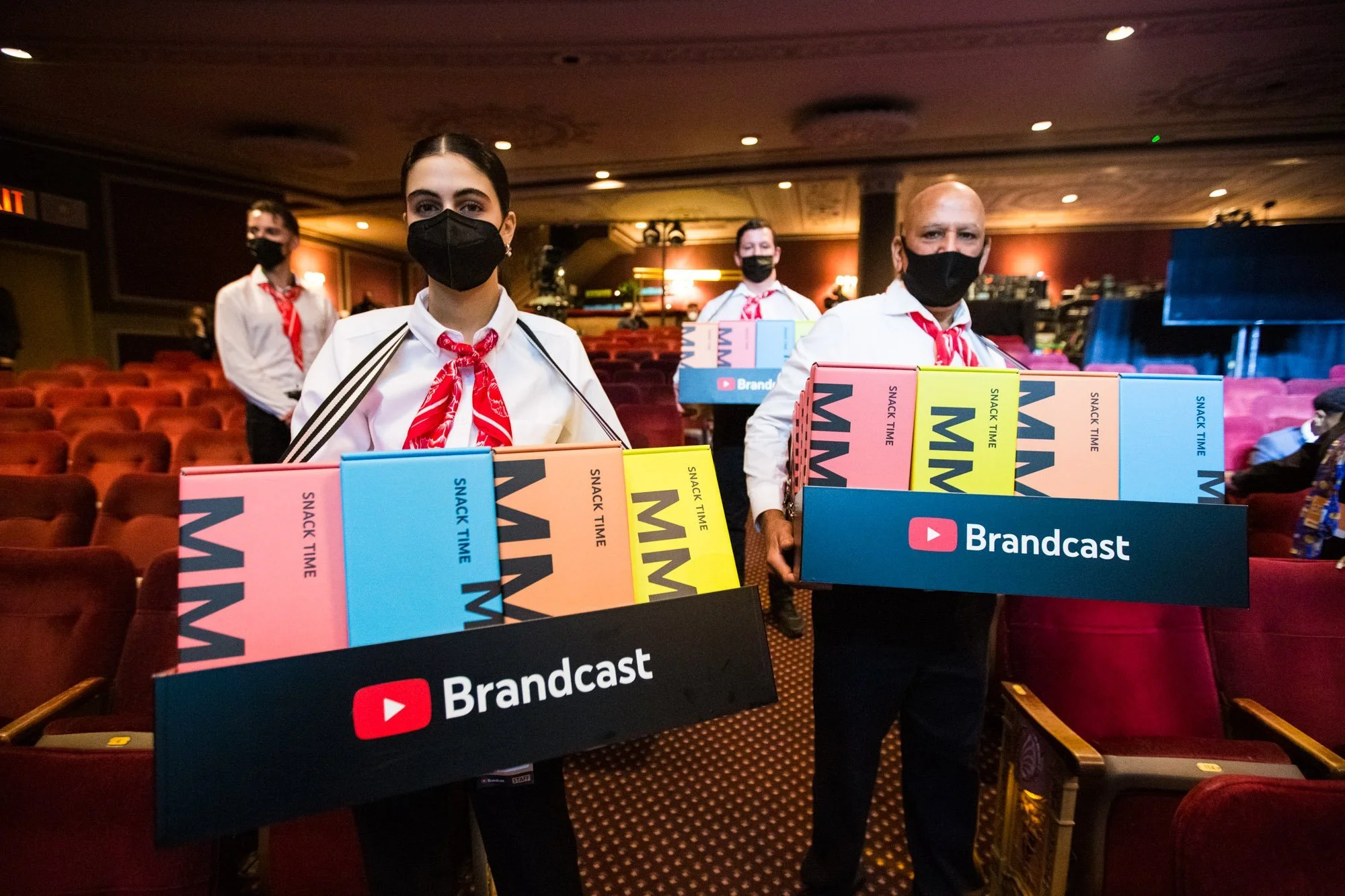 Brandcast 2022 in NYC! Guests were welcomed by a glamorous and eye-catching Front of House experience for a reimagined show at the Imperial Theatre. Wild-posting outside the venue heralded the presence of the world’s top creators - inside, ushers delivered customized snack boxes for the ravenous crowd. Performances by Lizzo and YouTube celebrities. In collaboration with Good Sense & Co.