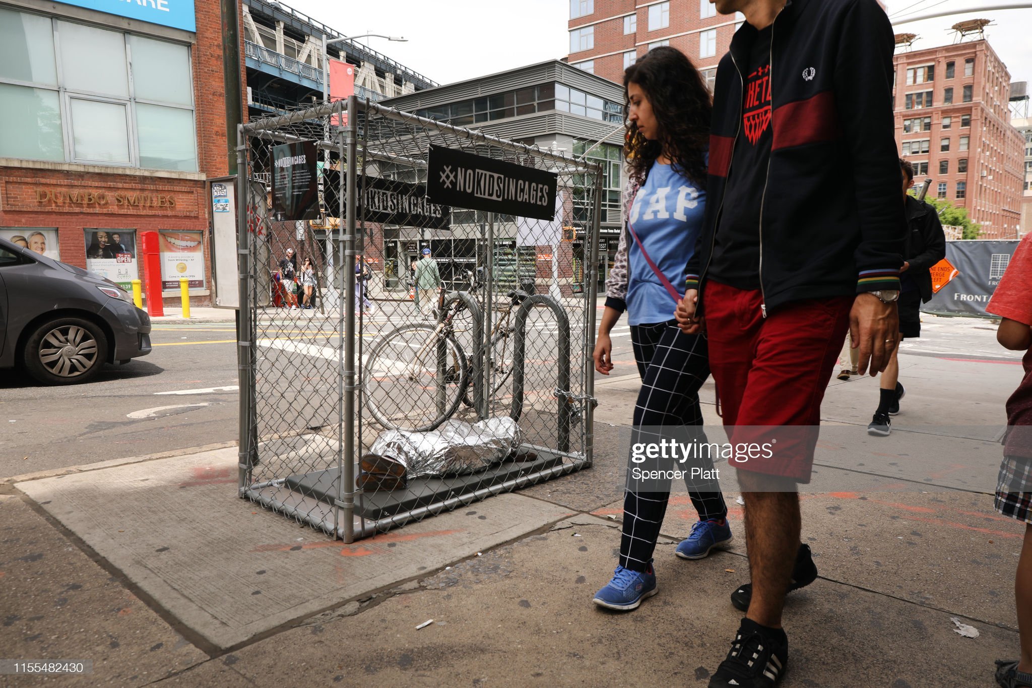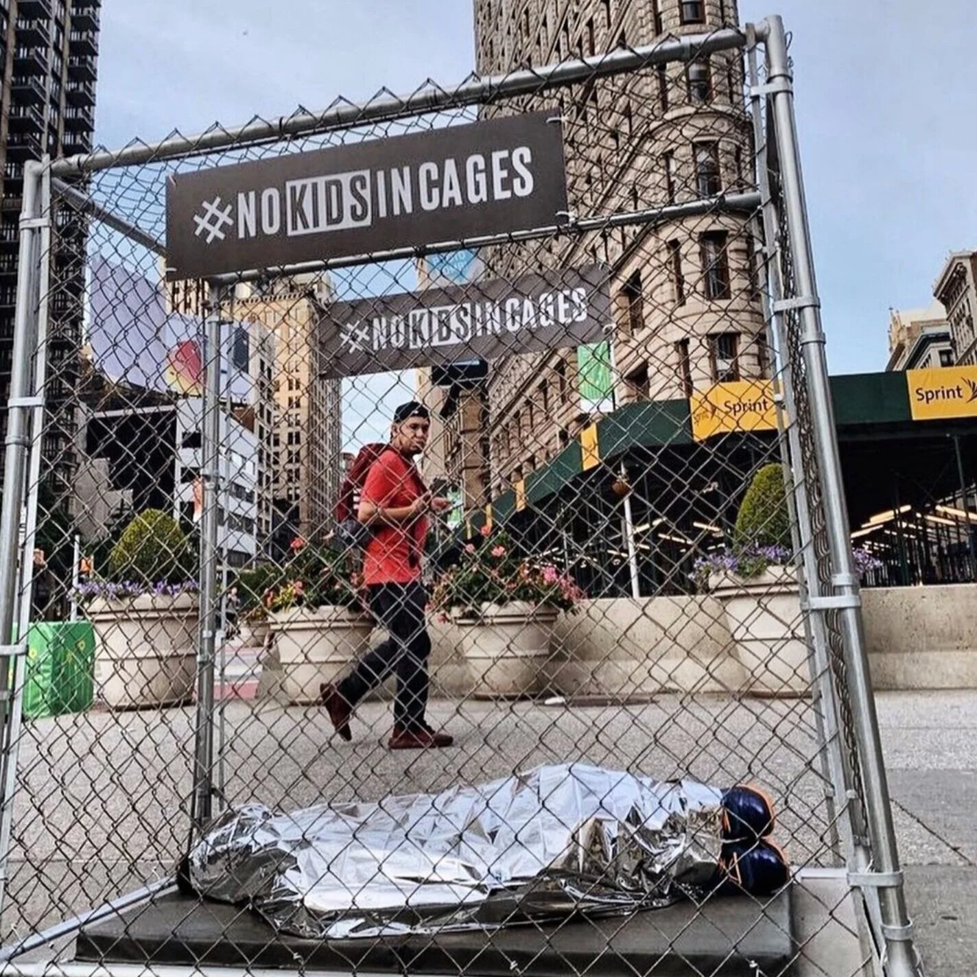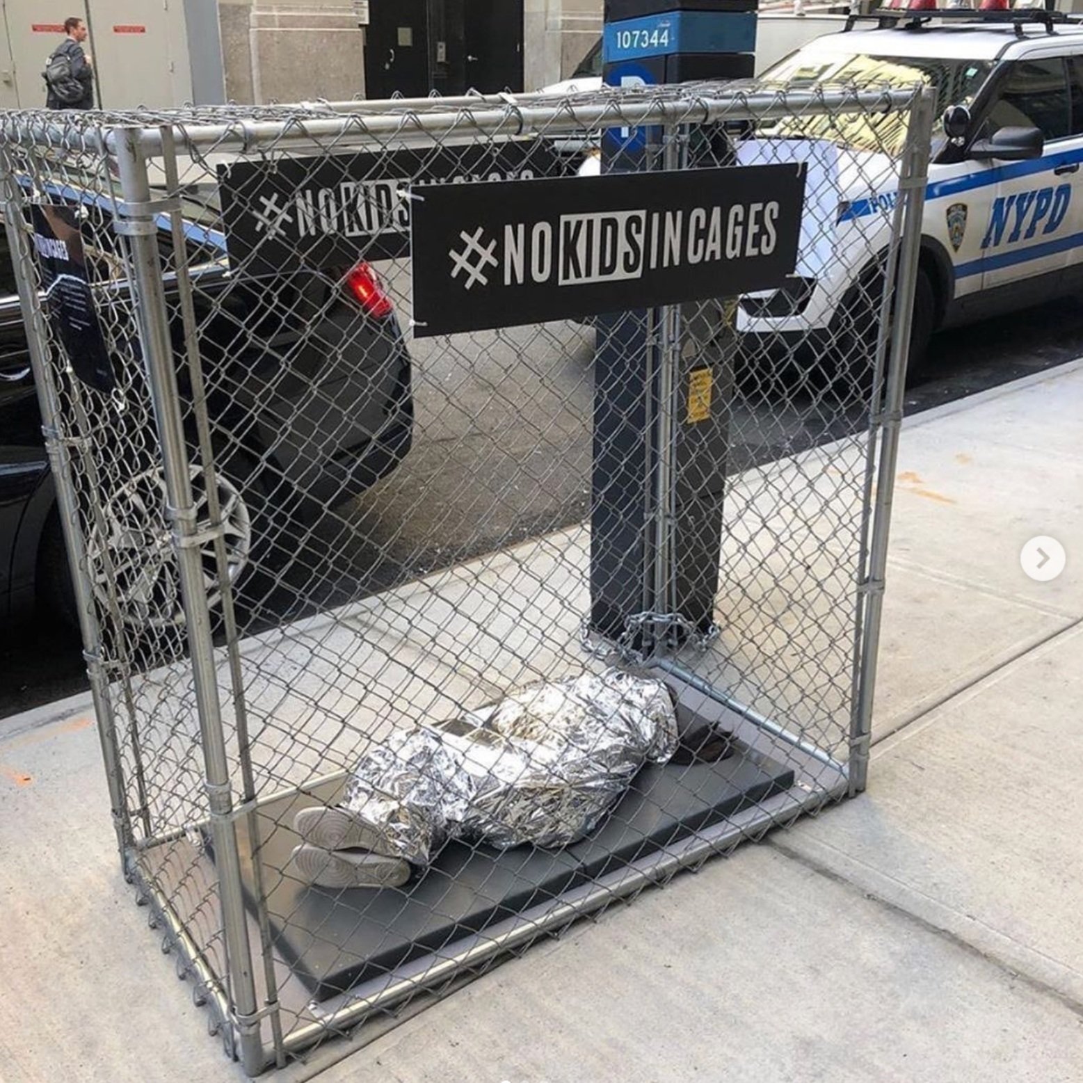 No Kids In Cages, 2019 Dozens of guerrilla installations depicting models of "children" in cages popped up around New York City -primarily in front of top news agency’s headquarters- stopped New Yorkers in their tracks, drawing attention to the treatment of migrant children being held by the government at the U.S.- Mexico border.