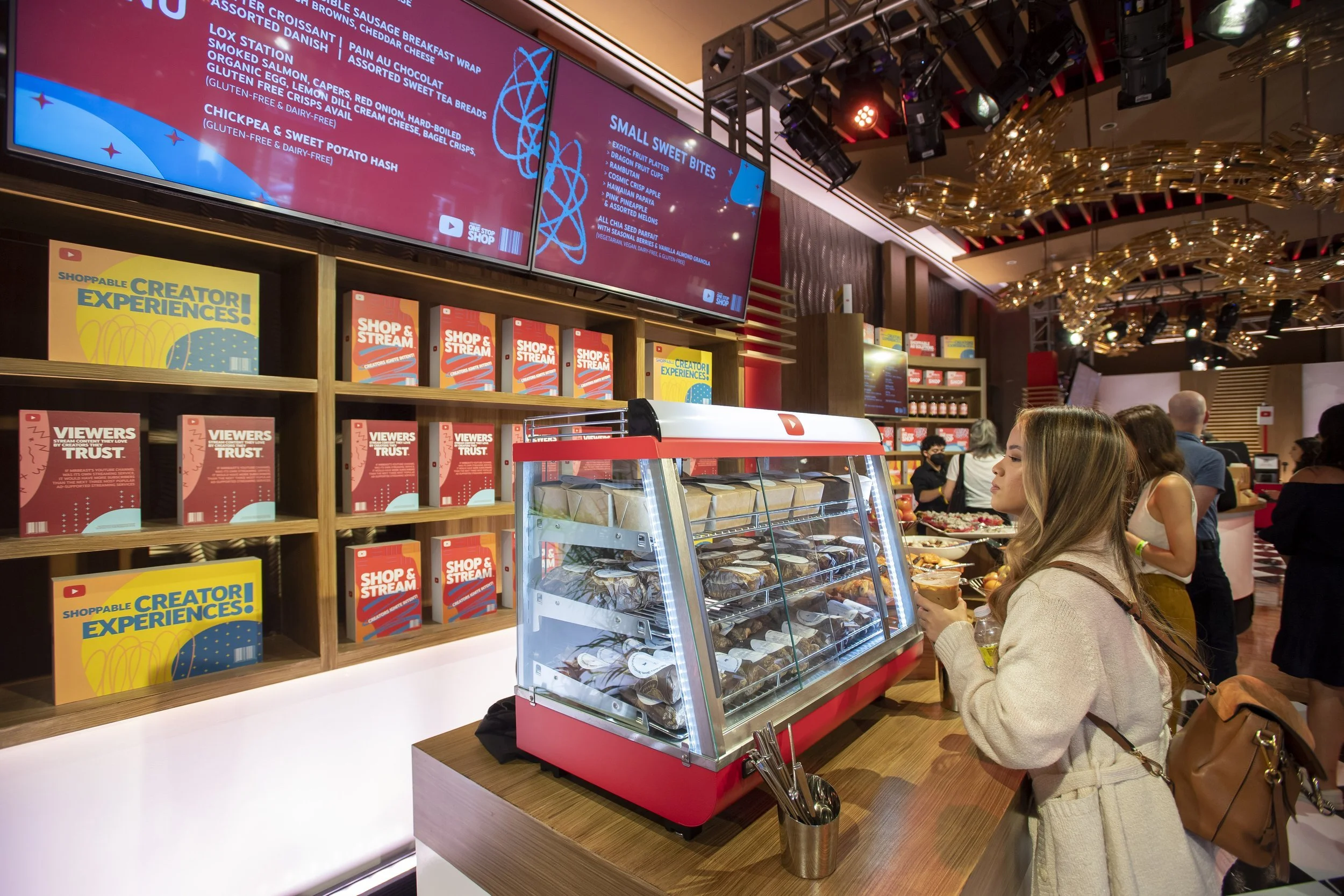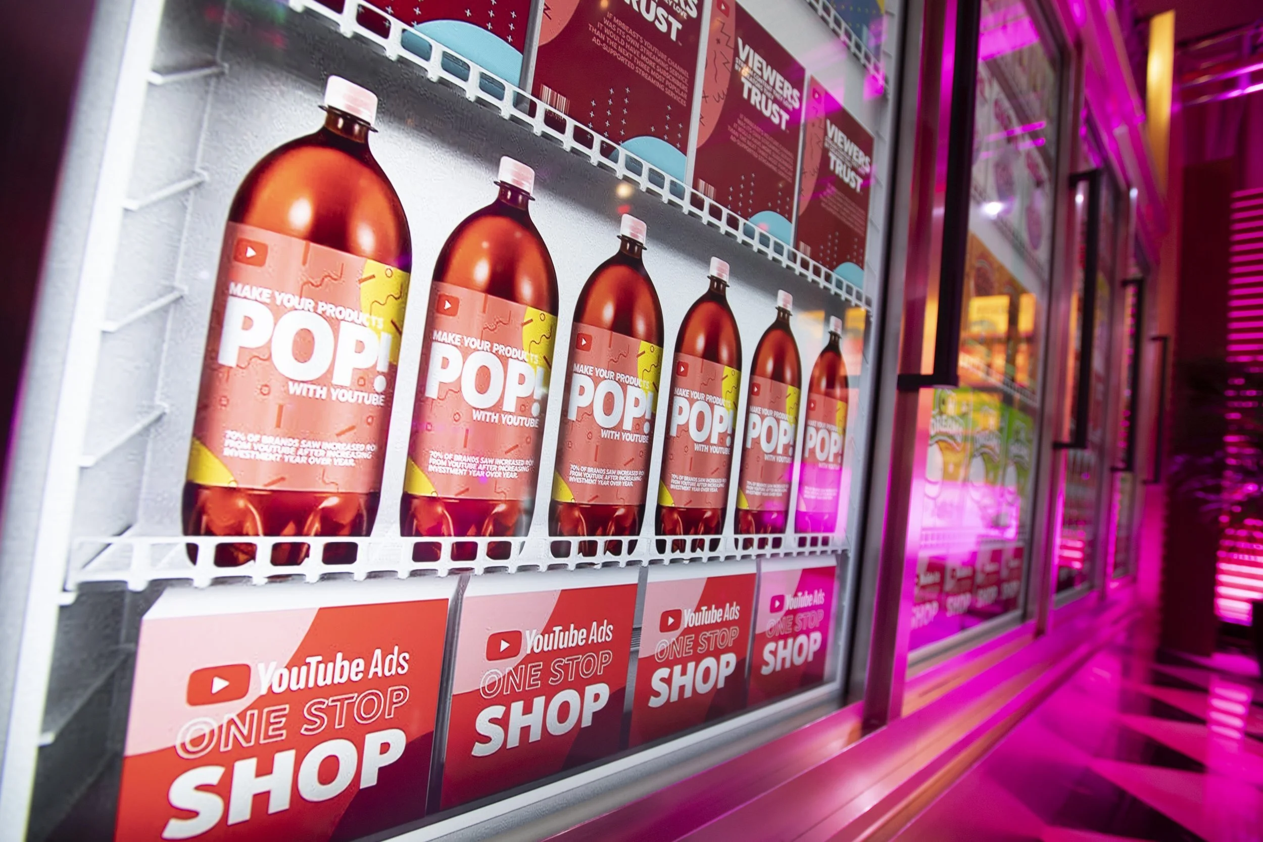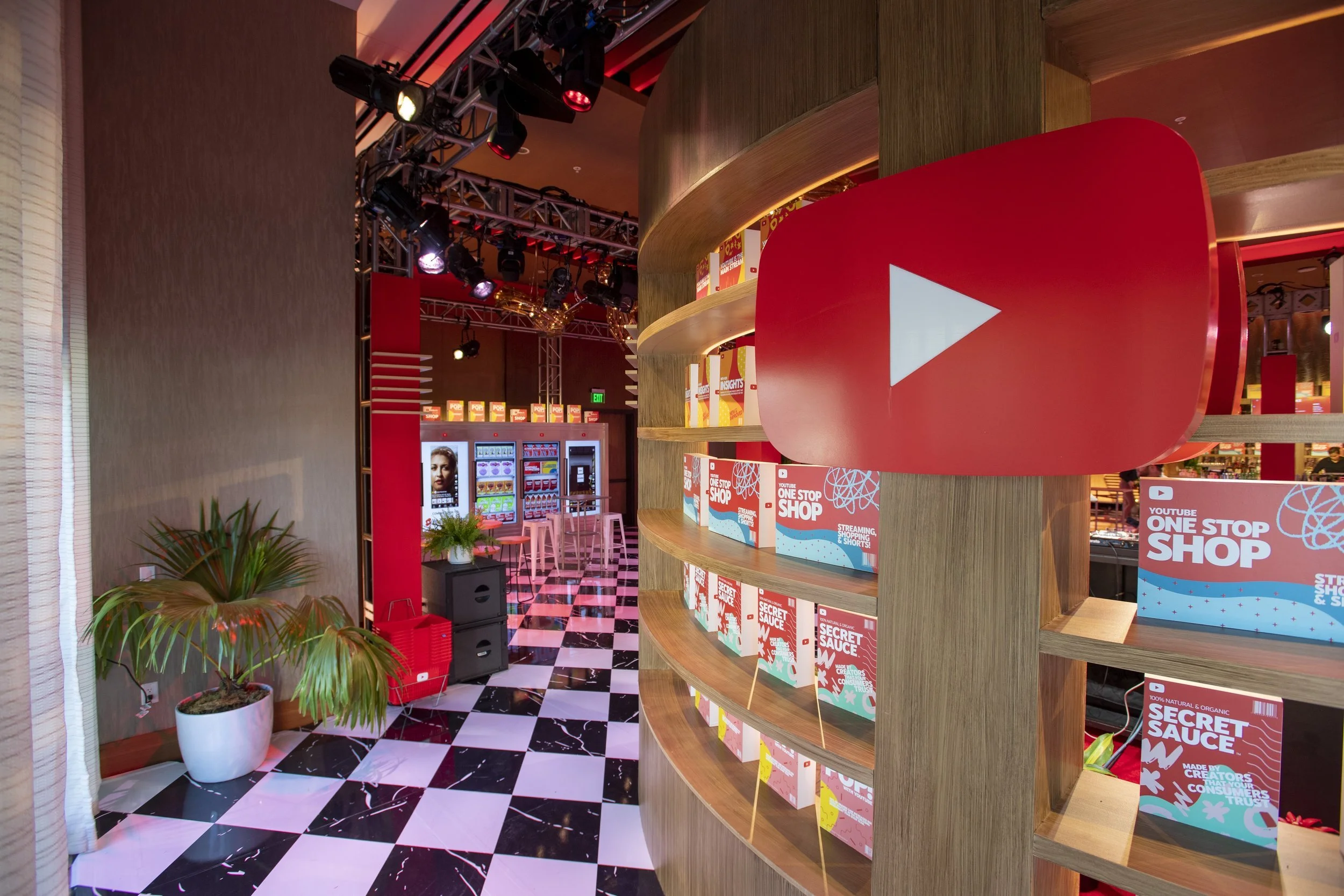 In Anaheim, CA in July of 2022, brand partners and advertisers were given a taste of the YouTube Shopping experience with this immersive ONE STOP SHOP activation. The whimsical “mini mart” design and rows of customized product display underscored YouTube’s latest offerings in the realm of live shopping on their platform.